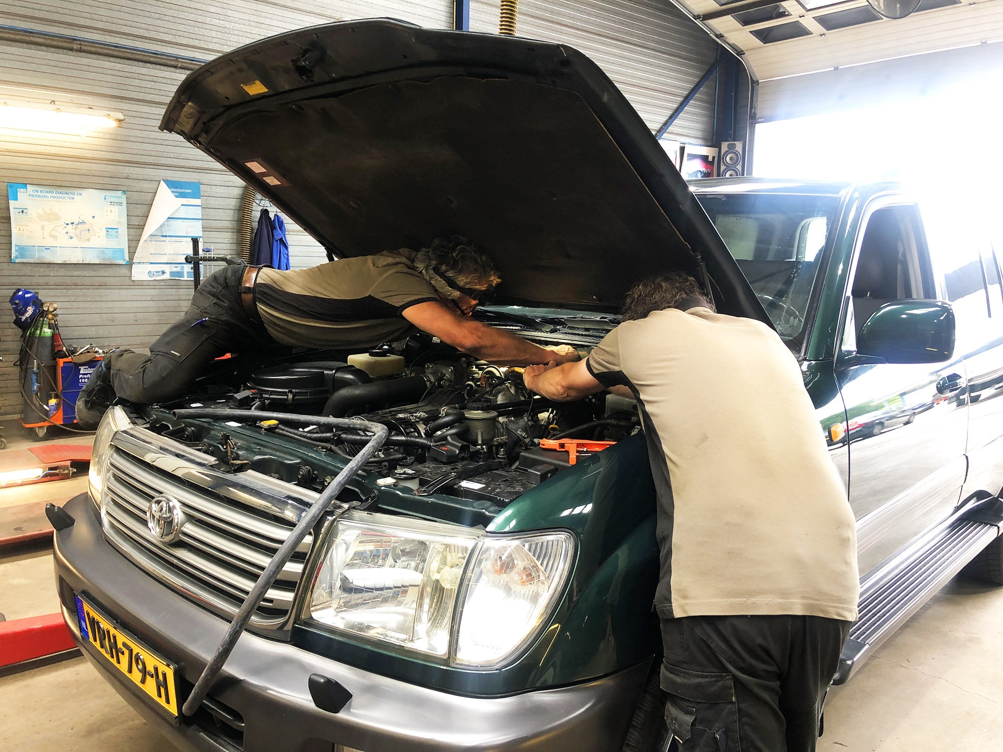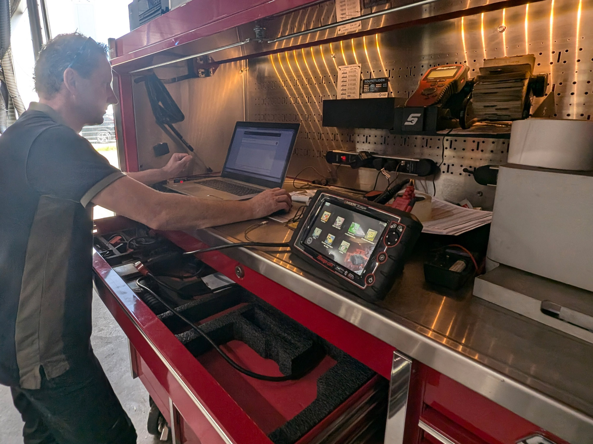 Drie verschillende diagnosetesters zijn aanwezig om bijna alle merken te kunnen uitlezen en storing te zoeken.